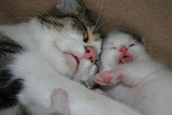 Welche Auswirkungen das Füttern von Anifit hat, zeigte sich schon nach kurzer Zeit. Nicht nur, dass unsere Minka, die trotz wenigem Essen sehr rund ist und zu viele Kilo auf die Waage bringt, seit Anifit viel agiler geworden ist und unser 14 Jahre altes Sorgenkind Gisi (stark Nierenkrank) auf einmal mit Appetit wieder isst, nein unsere Pinki, ist am 13. September Mutti von sage und schreibe 10 Babys geworden. Eine Sensation, wie die Tieraerztin meinte, denn so etwas kenne sie nur aus dem med. Buch, allerdings nur mit acht Baby´s. Per Kaiserschnitt mussten die Kaetzchen geholt werden. Max. vier Babys gab die Tieraerztin vorab eine Ueberlebenschance, jedoch waren alle 10 Baby´s putzmunter.